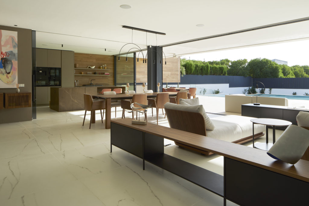 El interior se ha resuelto mediante una cuidada selección de mobiliario de PUNT, integrando piezas como la librería Open y la mesa Malmo, que aportan carácter, sofisticación y continuidad visual al conjunto. Este enfoque es clave en proyectos de interiorismo moderno en Valencia, donde la armonía entre los elementos define la calidad del espacio.