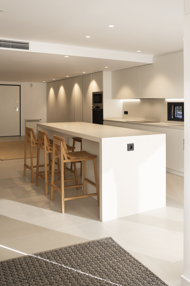 El mobiliario de cocina fabricado por Magama, define el carácter del proyecto mediante líneas limpias y una composición ordenada. La elección de acabados y la uniformidad de los volúmenes refuerzan la sensación de conjunto, favoreciendo una transición natural entre la cocina y el salón.